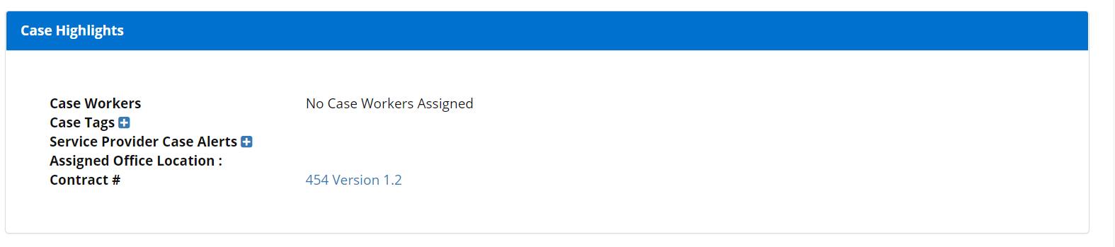 Service Providers > Case Highlights: are the highlights of the case that help for service providers to assign the case to Case Workers and more.