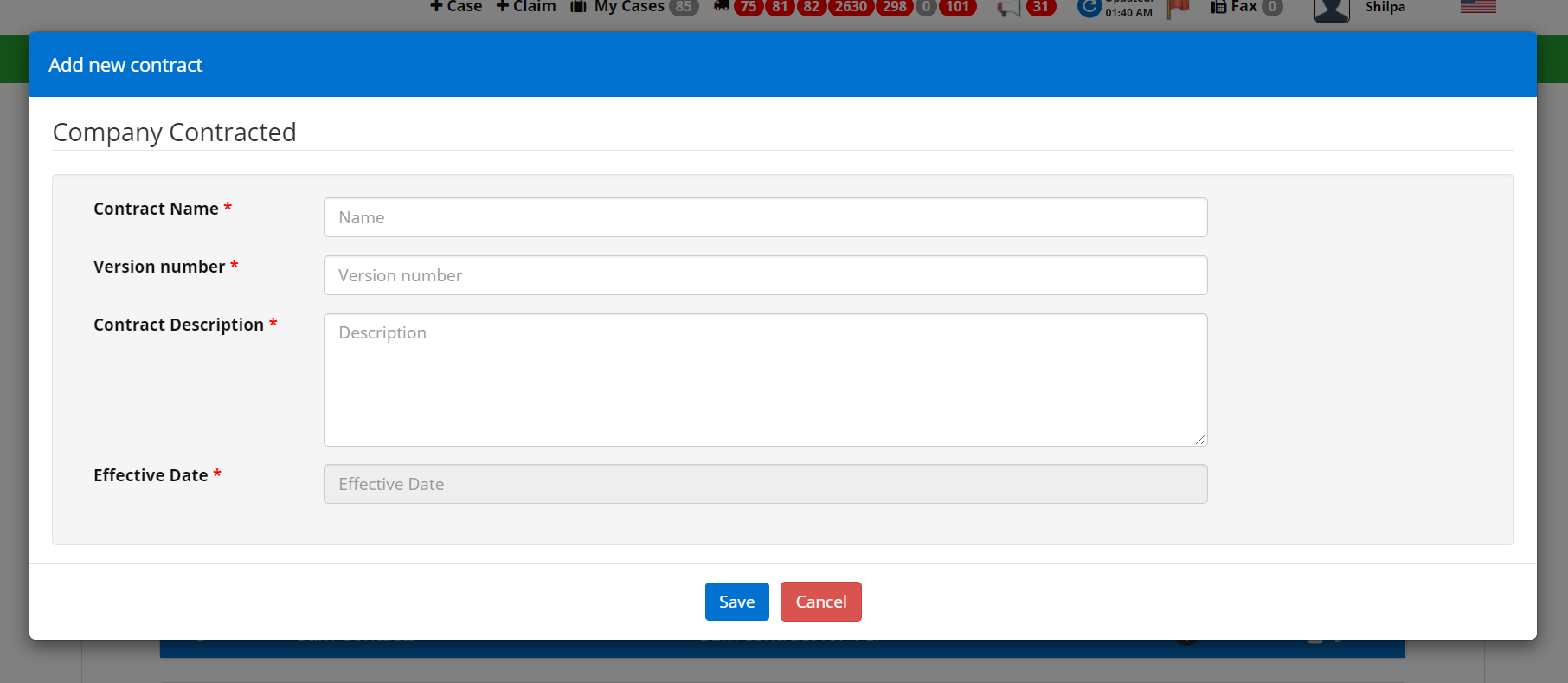 Step1: Login as admin to any company, click on Add New Contract link from the contract list tab, and fill out the form