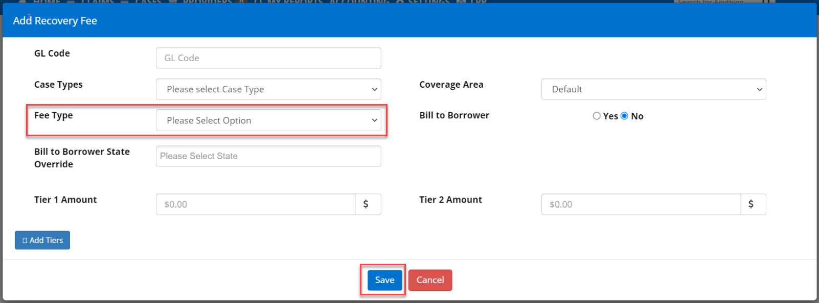 Step 3: When the contract page of the selected contract is opened, you can add all details by clicking on the +Add Recover Fee button