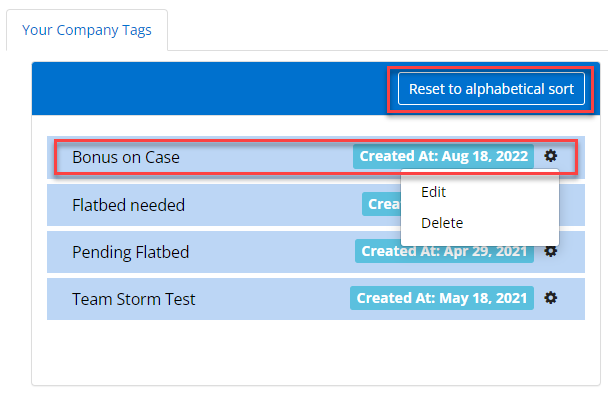Now you are able to use your created case tag, you can also edit, delete or put your list in alphabetical order