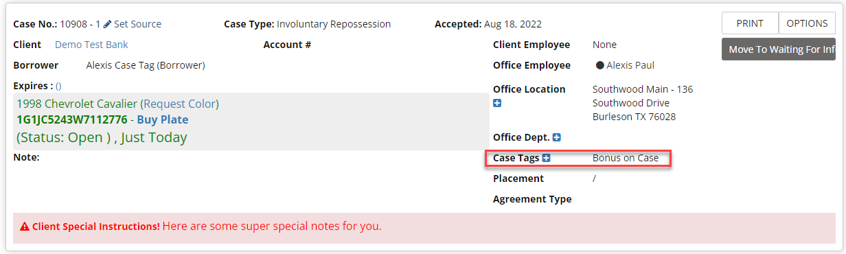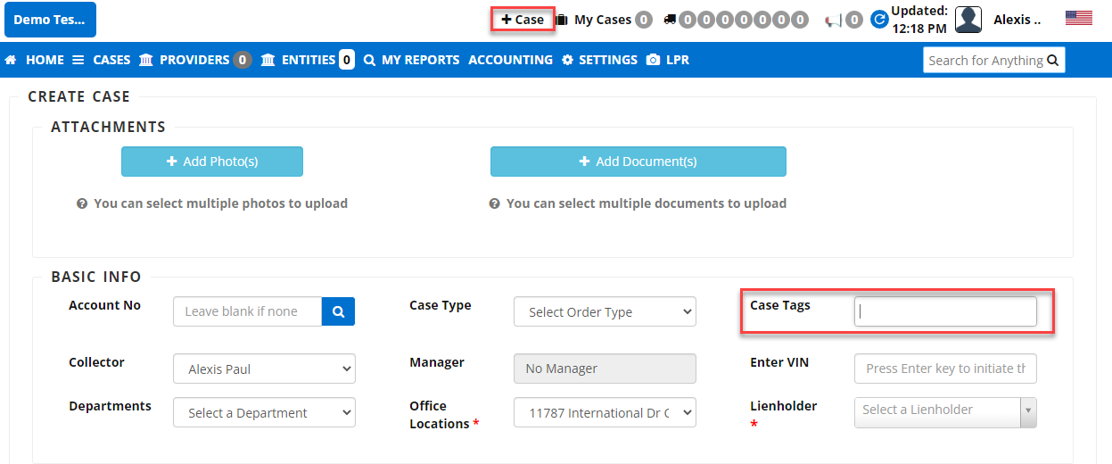 Note: You can also add a case tag to an existing case by clicking the +Case Tag from the case view