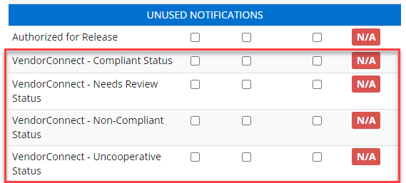 To add notifications back, scroll down to Unused Notifications then select VendorConnect-related notifications.