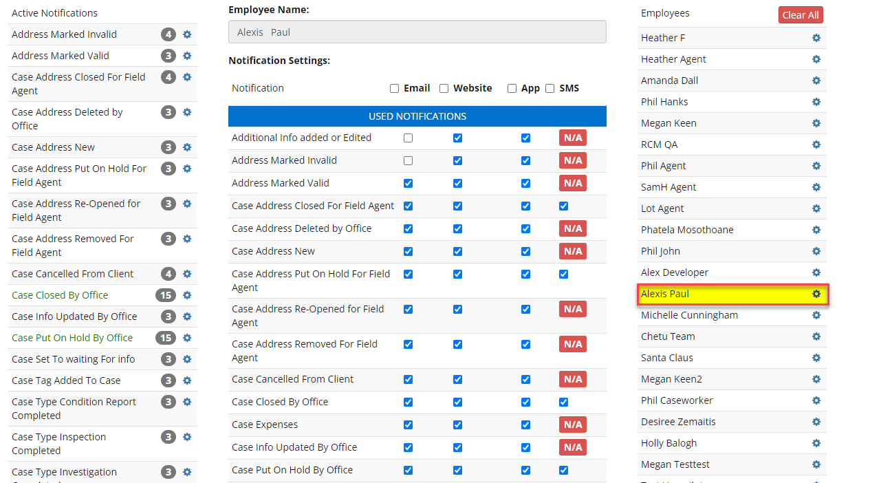 Step 2: Click on the Gear to the right of the user you would like to update notifications for