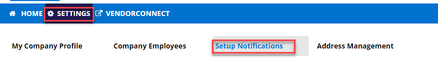 Navigate to Settings to manage the VendorConnect notifications you wish to receive.