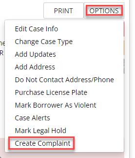 This article applies to lenders, forwarders and agencies Step 1: Navigate to the case, click OPTIONS
