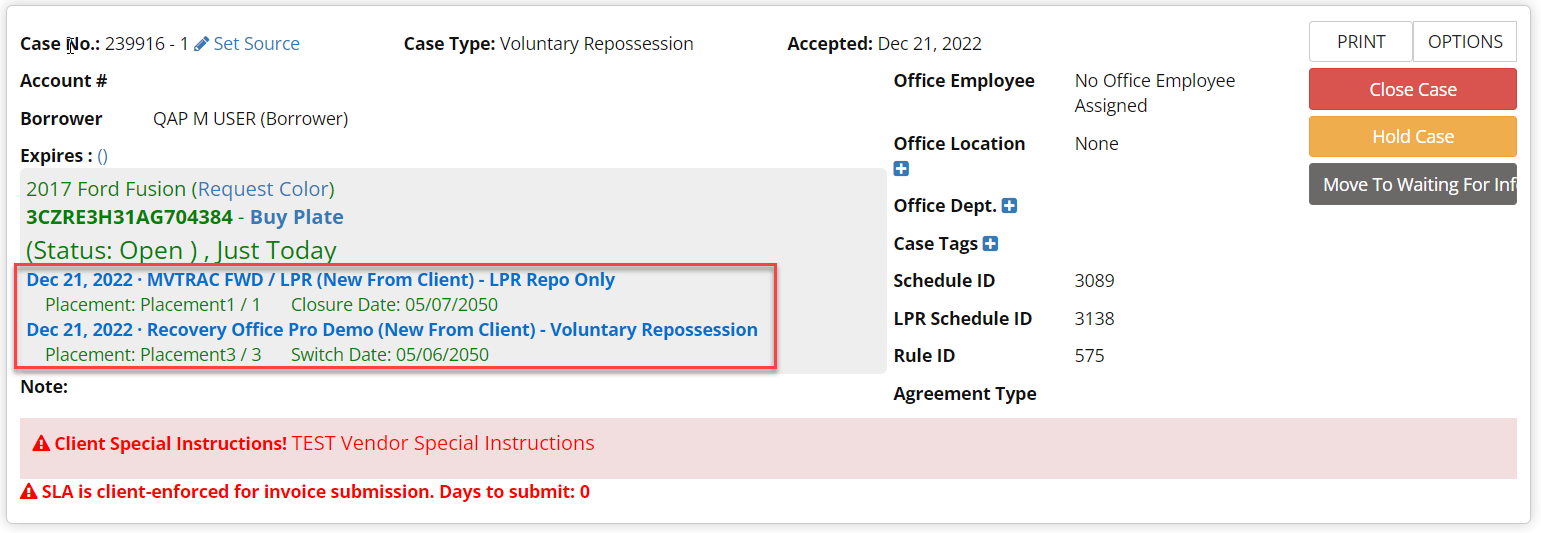 1. Shows case type changed from Involuntary Repossession to Voluntary Repossession