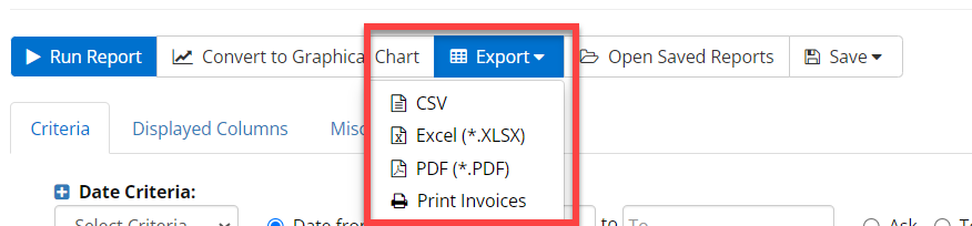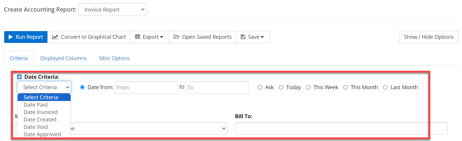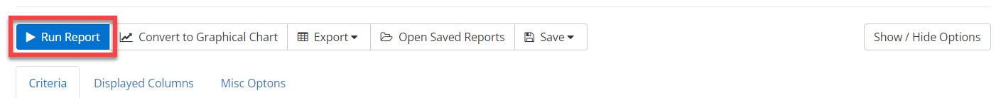 Note: If you select a date range then you also need to select the date criteria for the report to pull the accurate information.