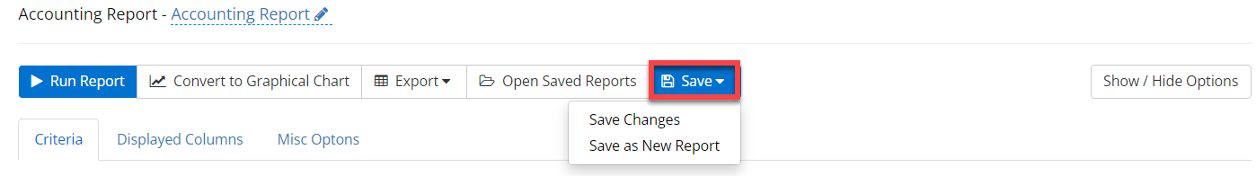 Selecting Save will allow you to keep the report you have just created. You will be able to choose if you would like to have that report on your home screen dashboard or it can just be saved within the Accounting section.