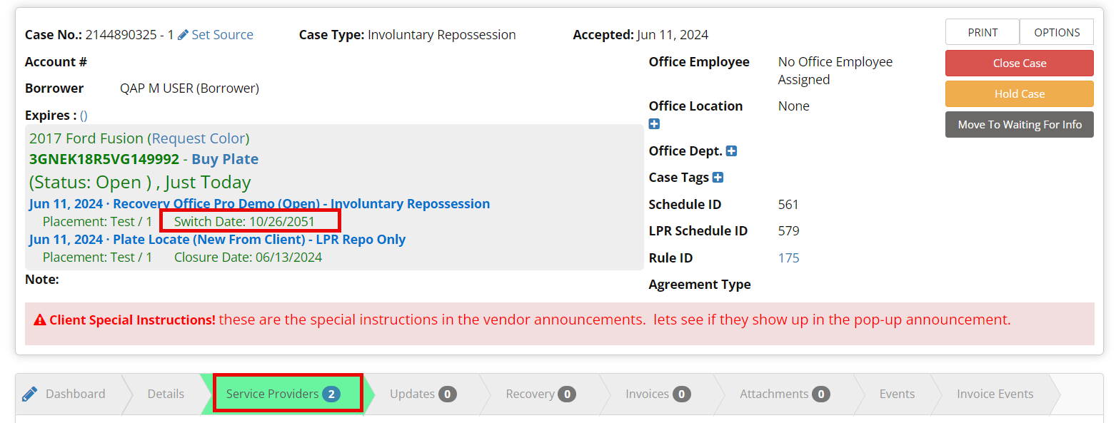 This article applies to lender company admins Step 1: From the parent case view navigate to the Service Provider tab