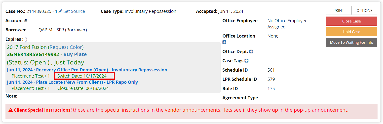 Note: Cases need to be accepted by the Service Provider before you are able to change the Switch Date.