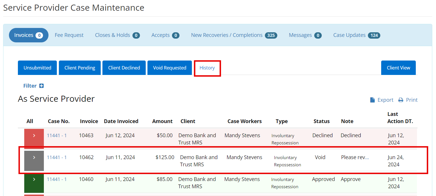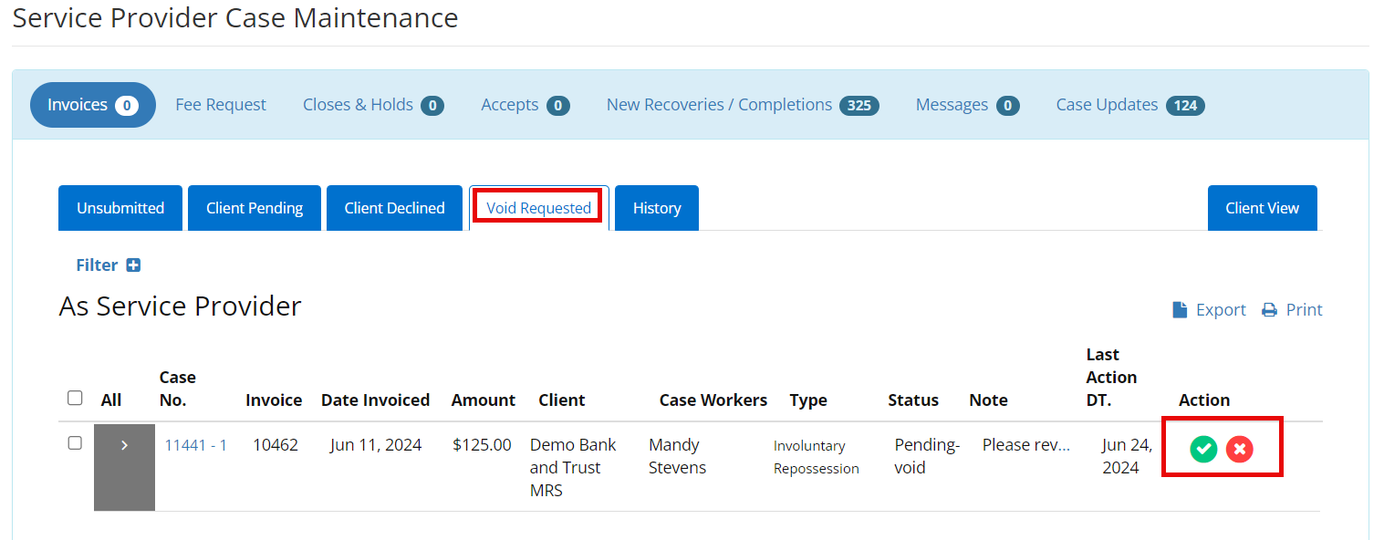 This article applies to company admins and billing employee types RecoveryConnect now gives service providers the ability to approve or decline invoice void requests on their own.