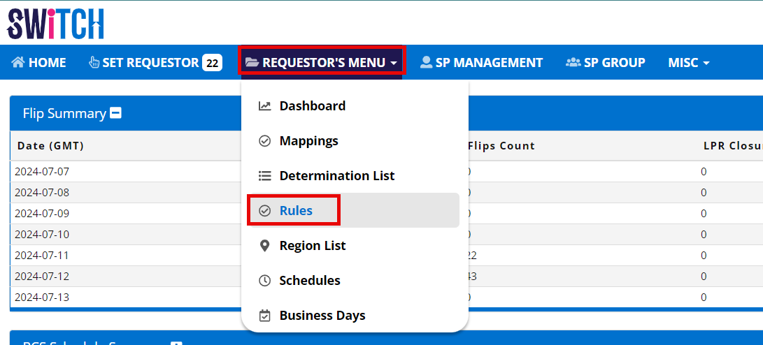 This article applies to lenders or forwarders using SwitchStep 1: Hover on Requester's Menu