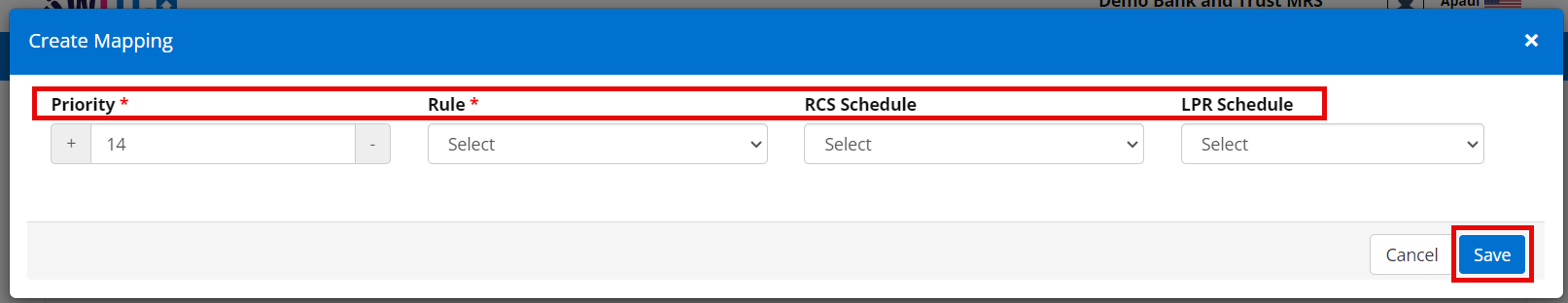 Step 7: Select the desired LPR schedule to be mapped with rule and RCS schedule (if applicable)
