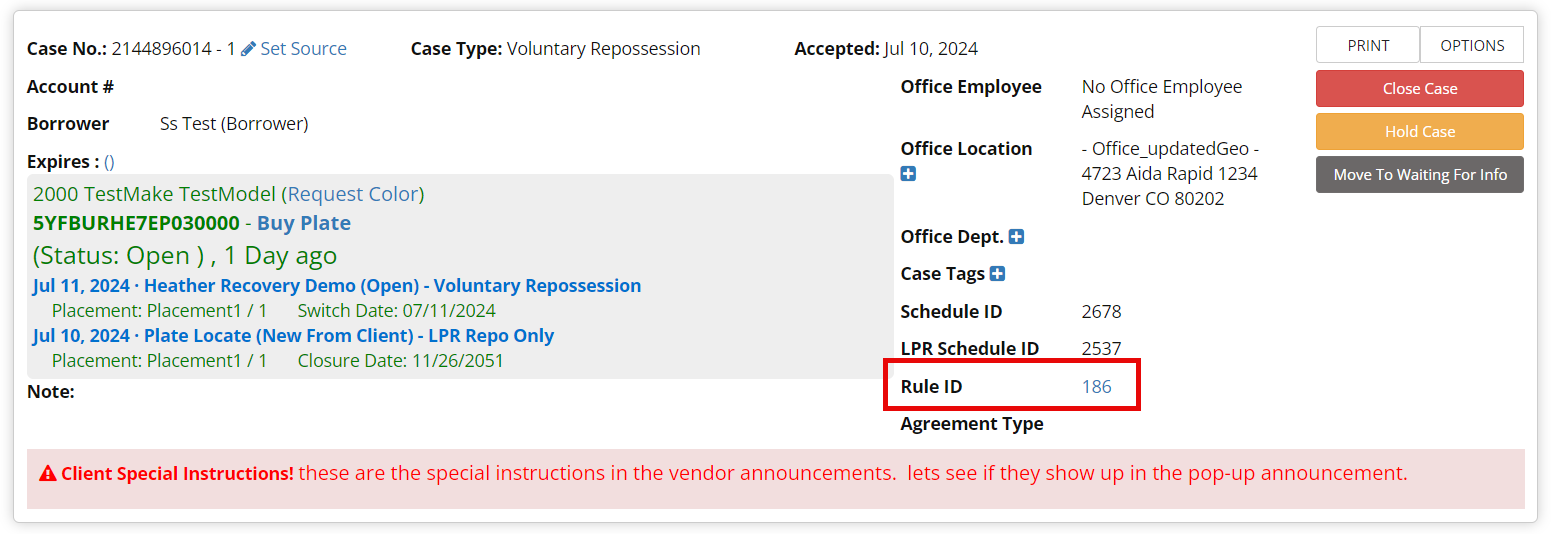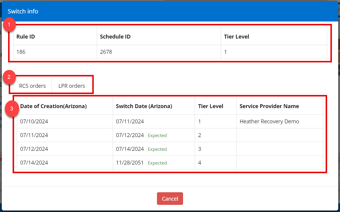 1. Shows: Current Rule ID, Schedule ID, and Placement Level