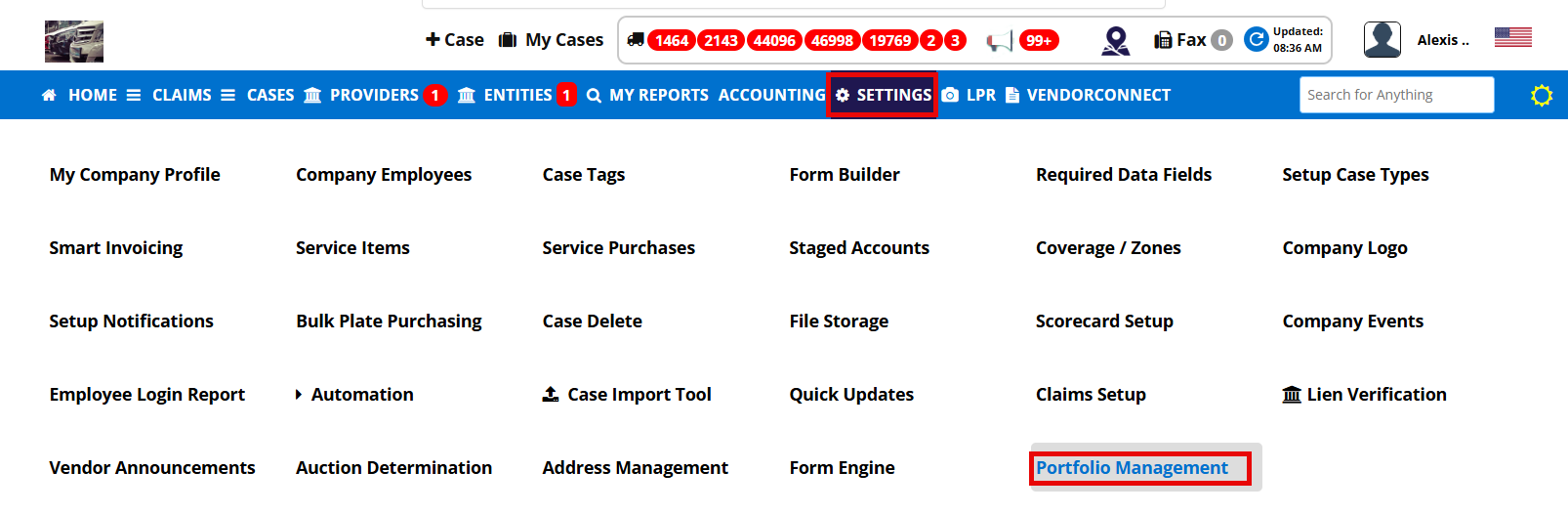 Step 1: Hover on Settings and select Portfolio Management