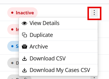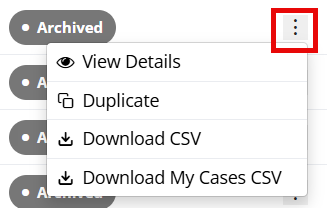 - Download My Cases CSV - Will download an Excel of all the parent cases