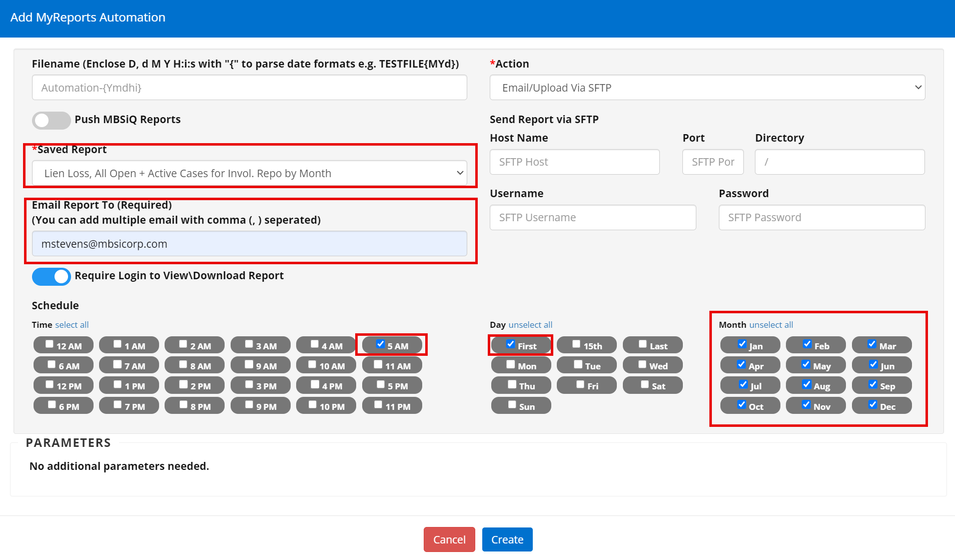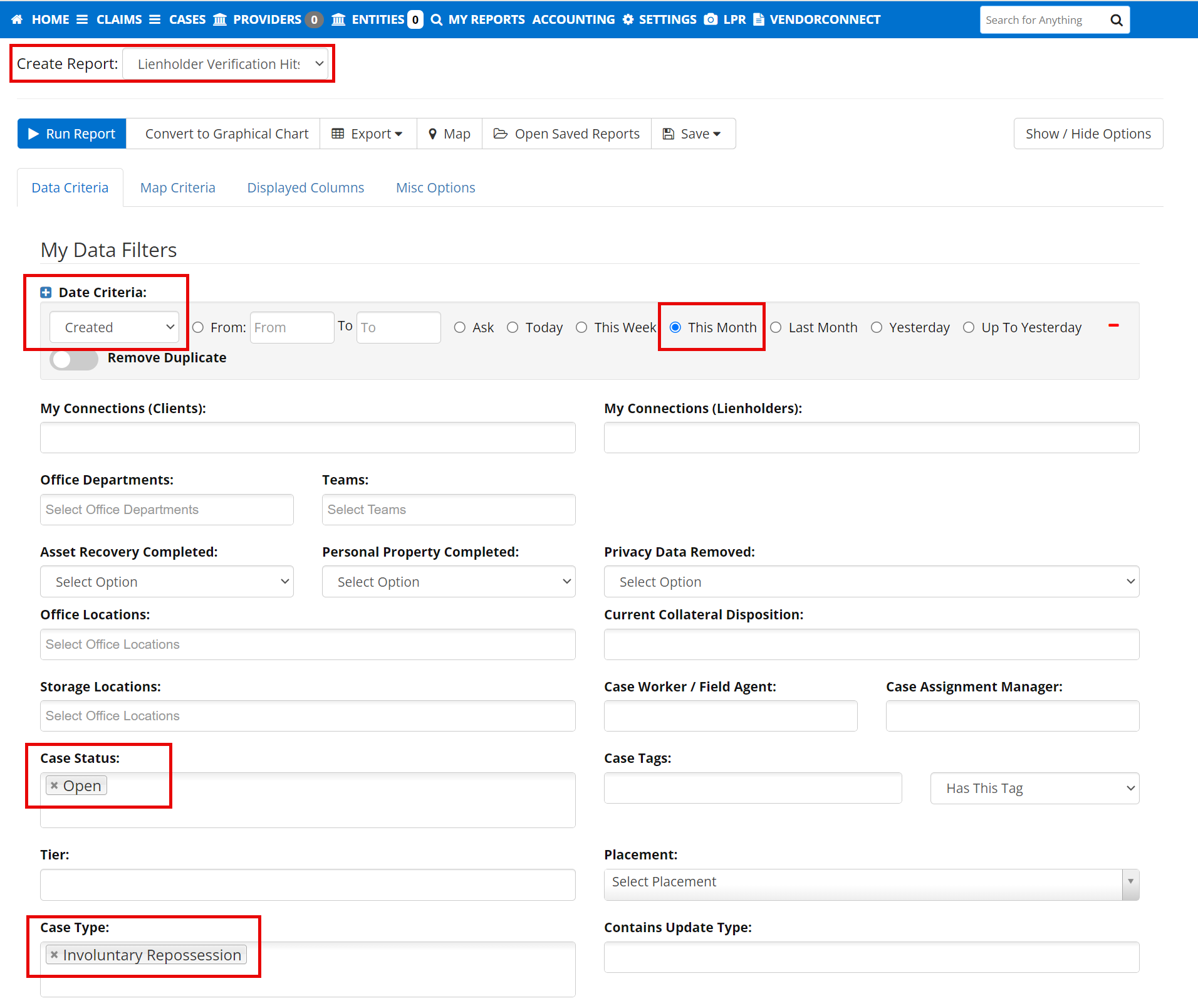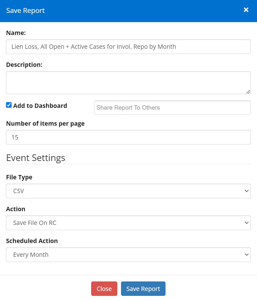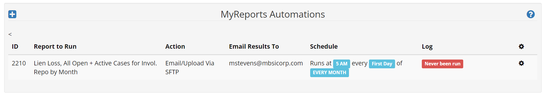 ”As a lender, I want to run lien loss against all open and still active, involuntary repossession cases every 30 days, on the first of every month at 5:00am, and to have that report emailed to me directly each month.”