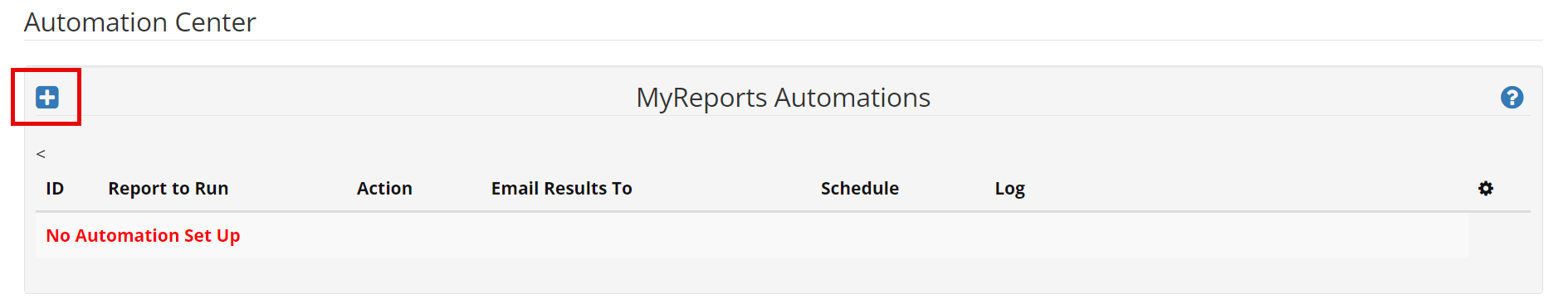 Select the plus icon to begin to set up a new automated report.