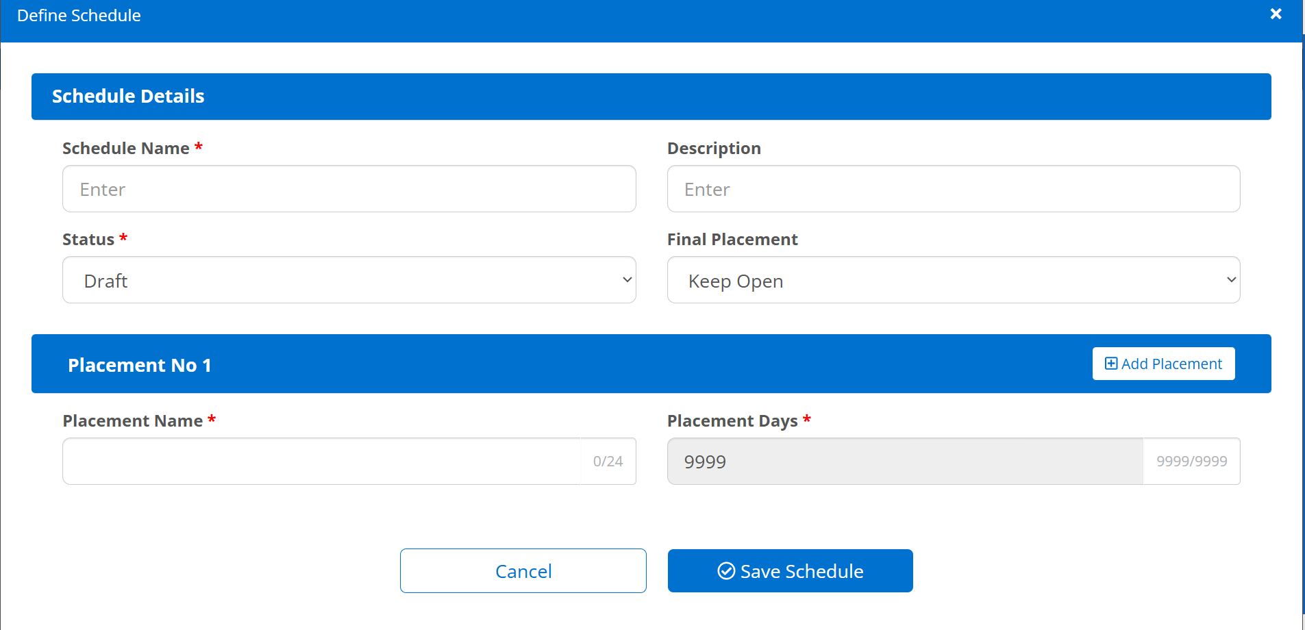 The number of placement attempts (e.g., 4) can be configured.