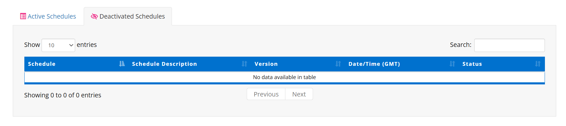 The system should have 2 separate tabs to display active and inactive schedules.