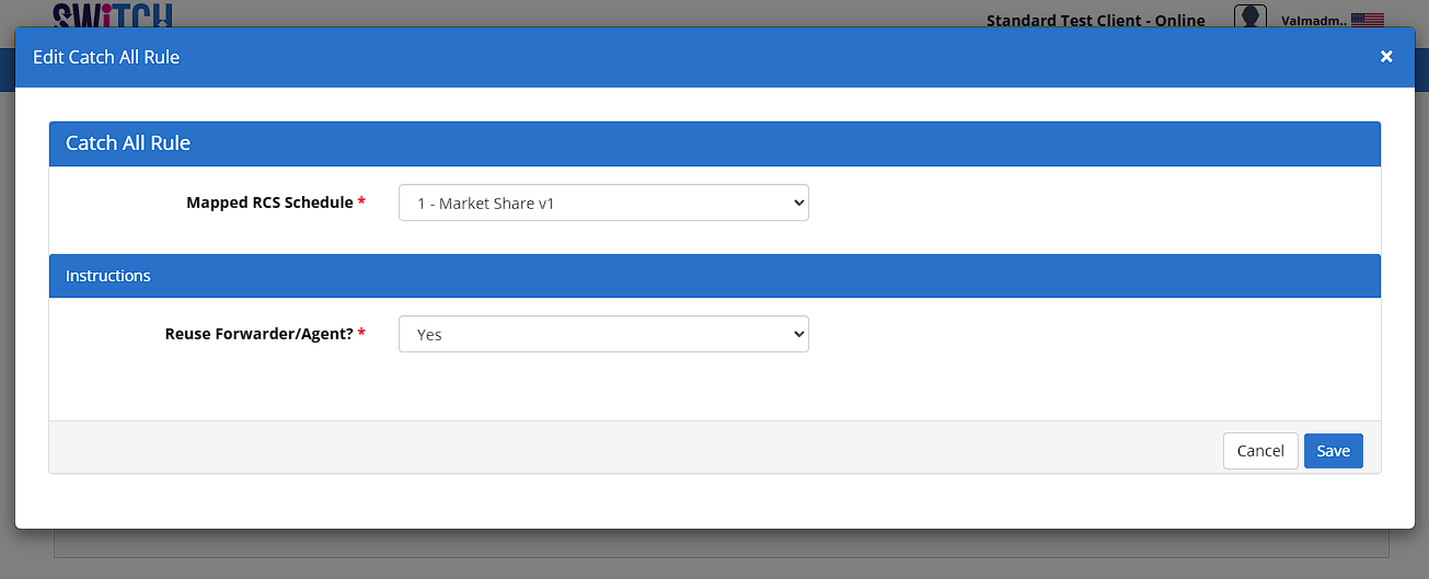 Introduce a Catch All Rule section on the Direct Rules page to handle unmatched scenarios. This section will include mandatory fields for Mapped Direct Schedule and Reuse Forwarder/Agent?, with selectable options